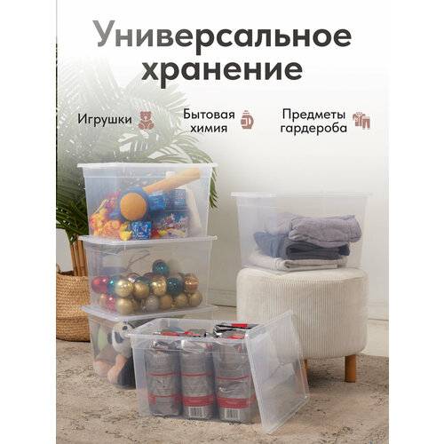 Контейнер пластиковый для хранения VERDE, органайзер прозрачный 26л