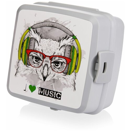 Ланч бокс детский в школу, контейнер для еды, хранение продуктов, цвет-серый рисунок филин