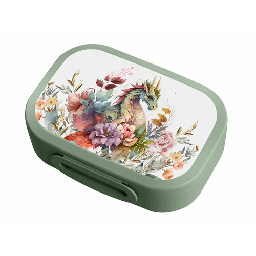 Ланч-бокс с декором Символ года Дракон светлый, 180x130x50мм, 0,98л (Зеленый флэк)