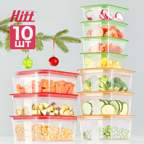 Контейнеры для еды с крышкой Hitt Steam, 10 шт, с паровыпуском
