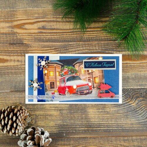Стильная открытка Конверт для денег "С Новым Годом!" ручная работа, красный автомобиль