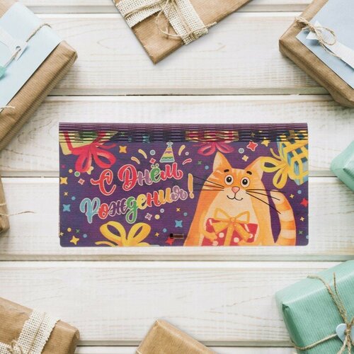 Конверт деревянный "С Днём Рождения!" кот, 17х8 см