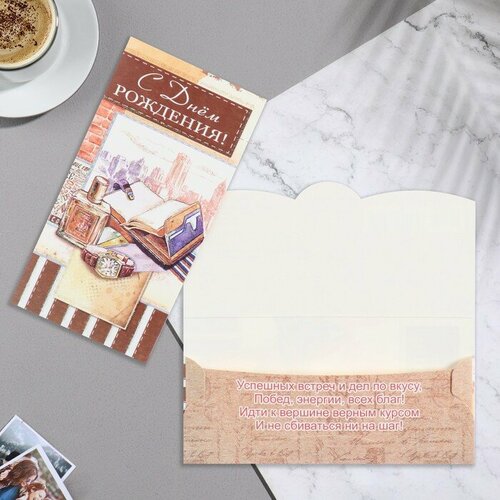 Конверт для денег "С Днем Рождения!" книга, коричневый тон, 17х8,8 см 9743533