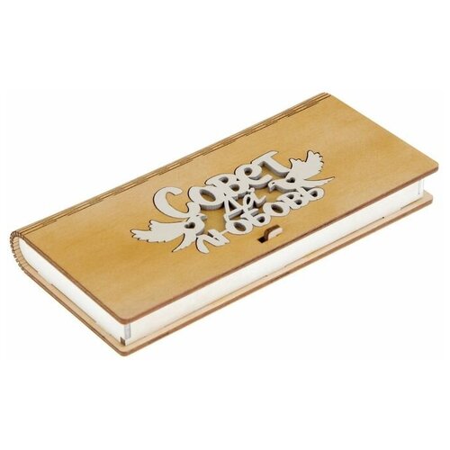 Конверт деревянный "Совет да любовь" желтый, голуби, 17 х 8,5 х 2 см