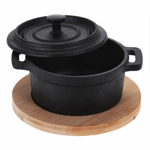 Koopman Кокотница чугунная с крышкой Тарти на бамбуковой подставке 270 мл 278000560