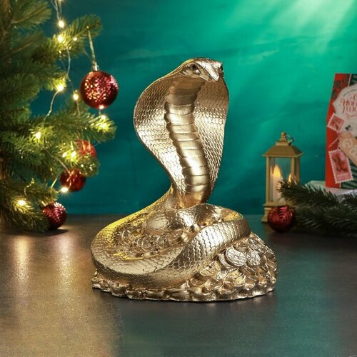 Фигура "Змея Кобра на деньгах" 25х18см, золото (комплект из 2 шт)