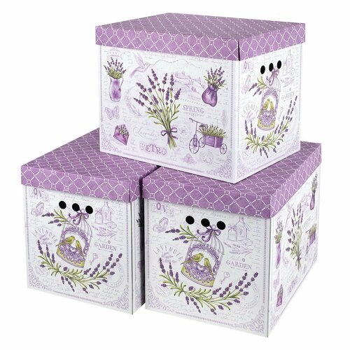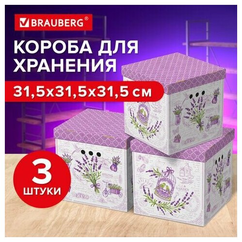 Короб для хранения из плотного микрогофрокартона 315х315х315 мм, комплект 3 шт, BRAUBERG HOME "Лаванда", 271817