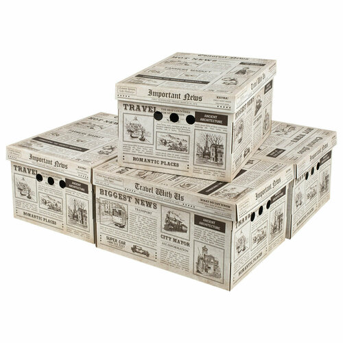 Короб для хранения из плотного микрогофрокартона 330х250х185 мм, комплект 4 шт, BRAUBERG HOME "Газета", 271814