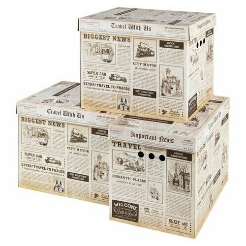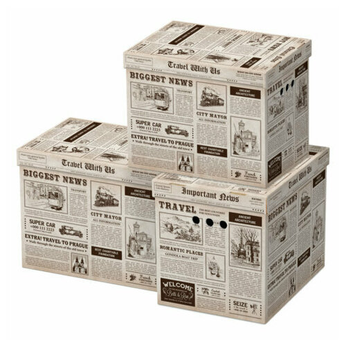 Короб для хранения из микрогофрокартона 380х280х315 мм, комплект 3 ШТ, BRAUBERG HOME "Газета", 271822