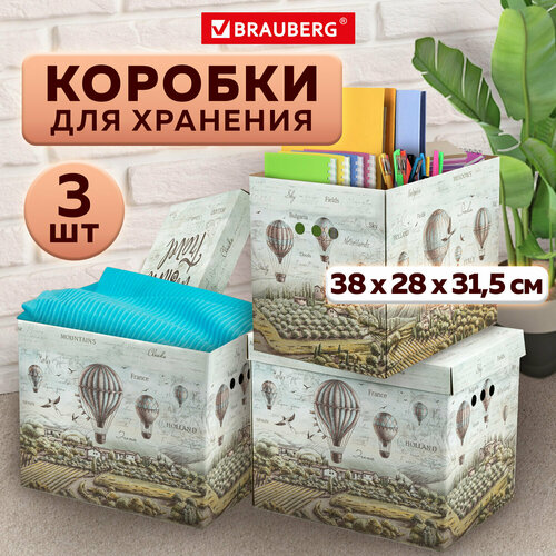 Короб для хранения из плотного микрогофрокартона 380х280х315 мм, комплект 3 шт, BRAUBERG HOME "Лаванда", 271821
