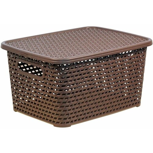 Корзина 34х24х14 см, прямоугольная, плетеная, полимер, с крышкой, Y4-7631