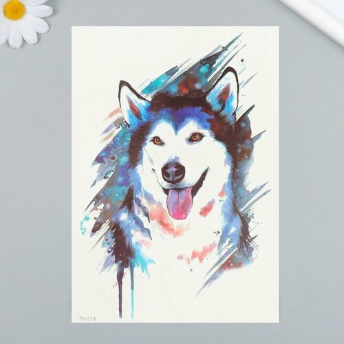 Татуировка на тело цветная "Хаски" 21х14,8 см
