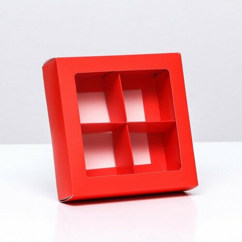 Коробка для конфет 4 шт, алый, 12,5 х 12,5 х 3,5 см