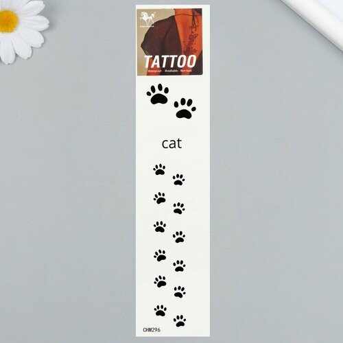 Татуировка на тело черная "Лапки котика" 20,8х4,7 см