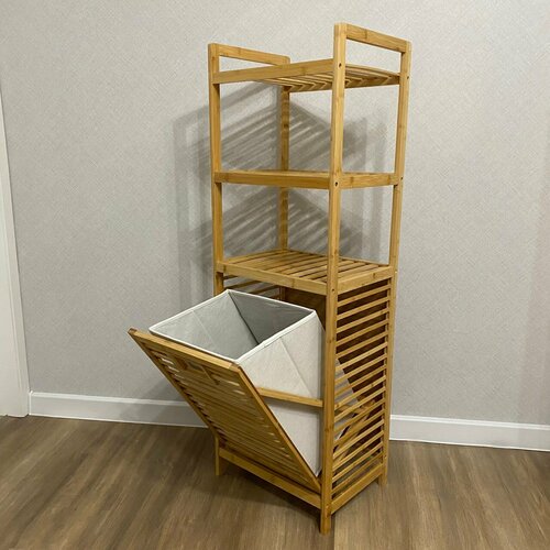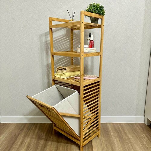 Этажерка для ванной из бамбука, Стеллаж для хранения с корзиной для белья Bambuchka, 50x33x70 см