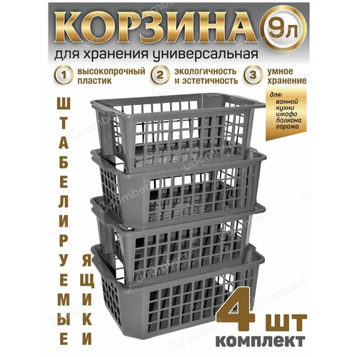 Корзина для хранения ящик 9л коробка 4шт пластиковая вещей