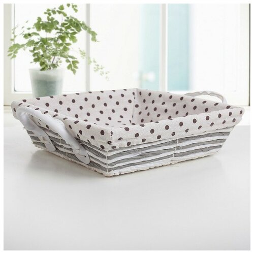 Корзина для хранения Доляна "Горох", плетёная, 30x25x7 см, цвет шоколад-белый