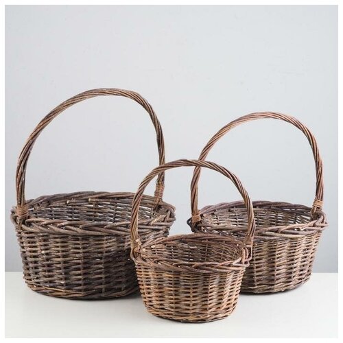 Набор корзин плетеных (ива), 41х41х20-48 см - 35х35х17,5-42 см - 29х29х15-36 см, 3 шт, кори