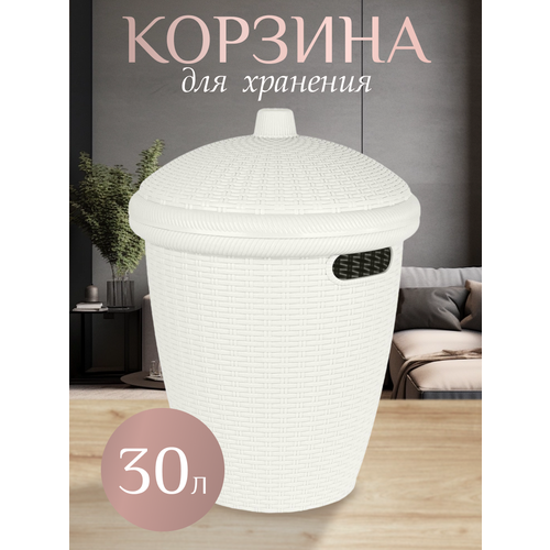 Корзина для белья Keeplex Rattan 30л 38х38х50,7см белое облако
