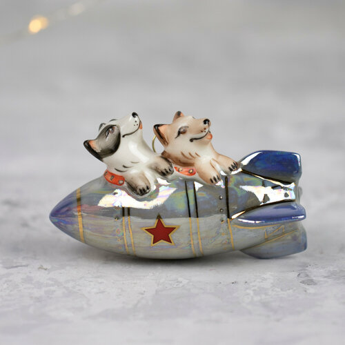 Ёлочная игрушка/сувенир "Белка и Стрелка vip в космическом корабле"/Фарфор.