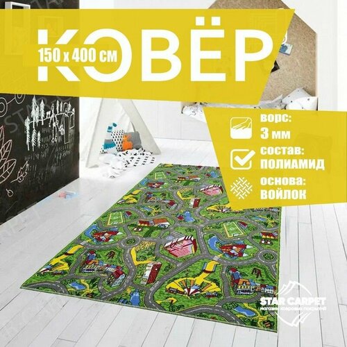 Ковер детский с дорогами Star Kids размер 150х400 см, палас в детскую комнату игровой