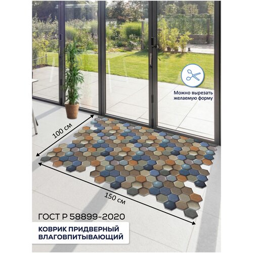 Ковер вырезной шахинтекс придверный влаговпитывающий 100х150 Соты 3D Микс