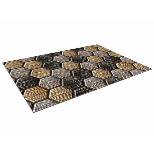 Коврик вырезной шахинтекс придверный влаговпитывающий 80х120 соты Куб серый с золотом