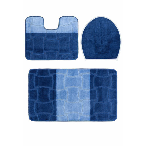 Комплект ковриков 60*100; 50*60; 47*50 см для ванной, для туалета, для унитаза, Confetti Bath Maximus Sariyer 2582 Dark Blue BQF