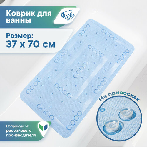 Коврик для ванны с присосками VILINA мягкий противоскользящий массажный 37х70 см голубой