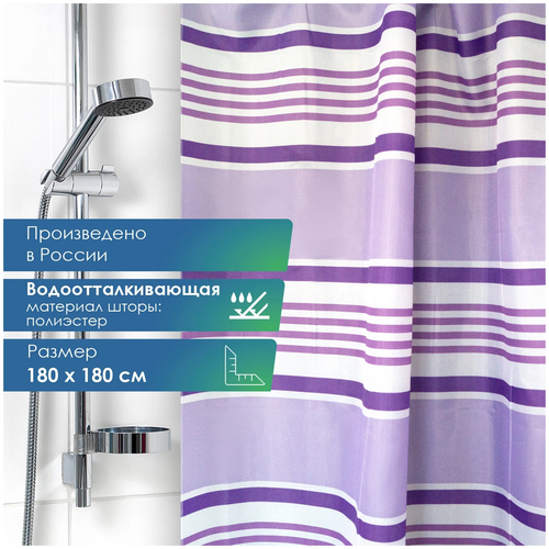 Штора для ванной вилина Лиловые полосы водонепроницаемая на штангу полиэстер лиловый 180х180см / занавеска для душа