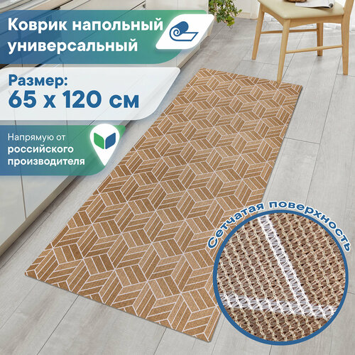 Коврик безворсовый мягкий напольный VILINA противоскользящий для ванной для туалета в комнату 65х120 см коричневый