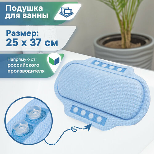 Подушка для ванны с присосками VILINA мягкая расслабляющая массажная подголовник 25х37 см небесно-голубая