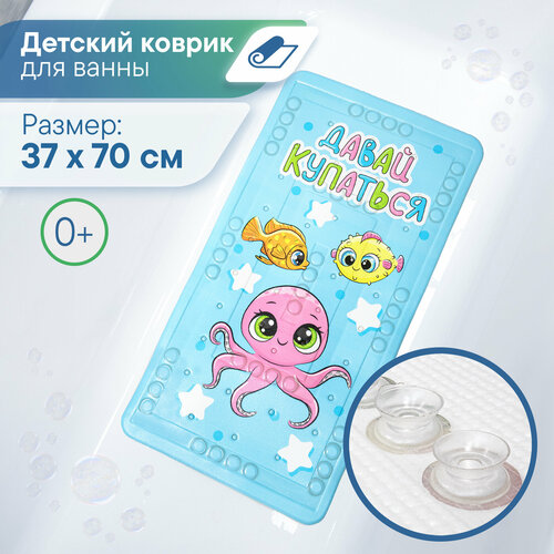Коврик для ванны мягкий детский VILINA противоскользящий с присосками с рисунком 37х70 см Осьминожка