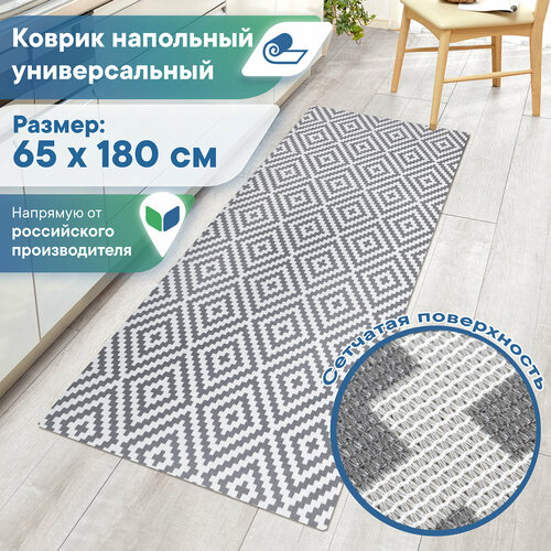 Коврик напольный из вспененного ПВХ, 0,65х1 м, Геометрия серая, вилина (отгружаем кратно 12м) (7107-geometry-grey)