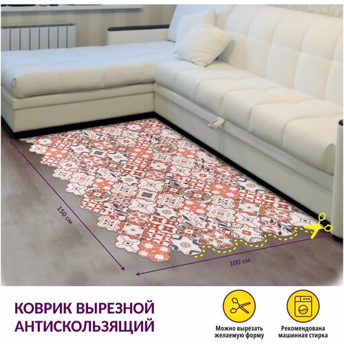 Ковер безворсовый 150х250 на пол антискользящий для кухни