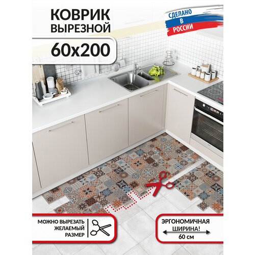 Коврик в кухню на пол, нескользящий, вырезной, безворсовый Icarpet PRINT 60х200 Плитка Марокко