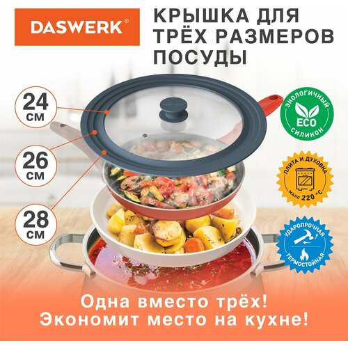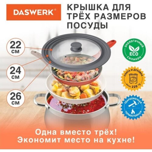 Крышка DASWERK для любой сковороды и кастрюли универсальная 3 размера (22-24-26 см) антрацит, , 607586
