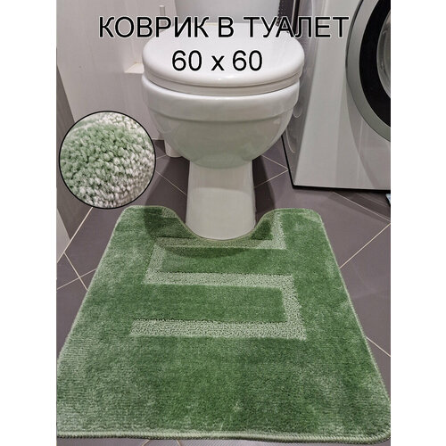 Коврик под унитаз с вырезом противоскользящий 60х60 большой зеленый