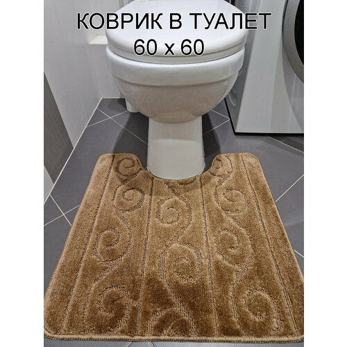 Коврик под унитаз с вырезом противоскользящий 60х60 большой коричневый