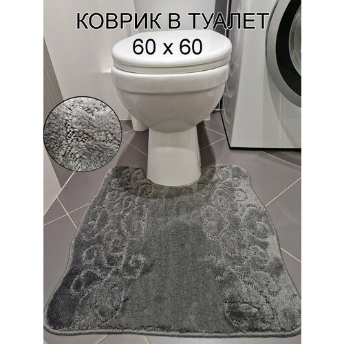 Коврик под унитаз с вырезом противоскользящий 60х60 большой темно-серый