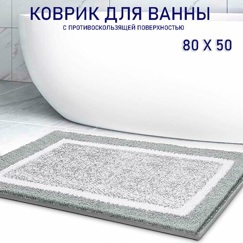 Коврик 80х120 нескользящий большой для ванной серо-зеленый мрамор