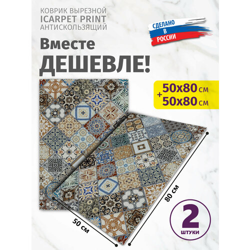 Коврик придверный вырезной, антискользящий влаговпитывающий. Набор из 2 штук icarpet PRINT Плитка Тоскана 50х80+50х80 мультиколор