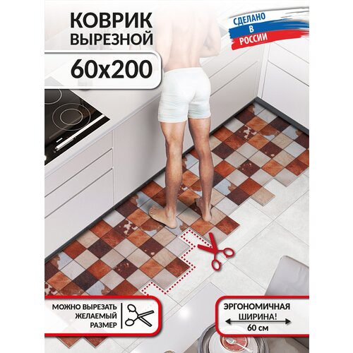 Коврик в кухню на пол, нескользящий, вырезной, безворсовый Icarpet PRINT 60х200 Пэчворк Шкурки