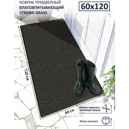 Коврик придверный грязезащитный SHAHINTEX STRONG GRASS ТПР 60х120 антрацитовый