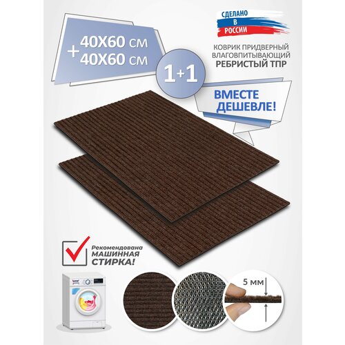 Коврик придверный вырезной. 2 штуки противоскользящий влаговпитывающий Icarpet Ребристый ТПР 40х60+40х60 брауни