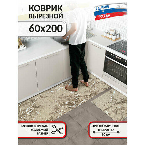 Коврик в кухню на пол, нескользящий, вырезной, безворсовый Icarpet PRINT 60х200 Мрамор бежево-коричневый