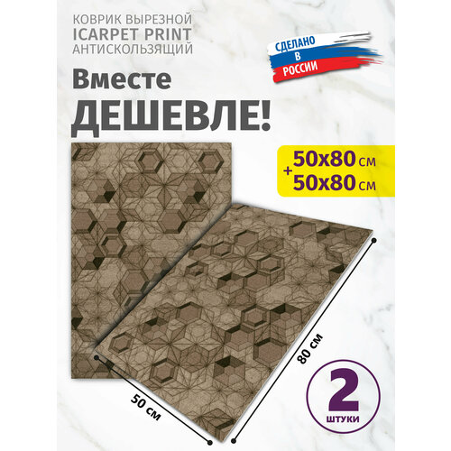 Коврик придверный вырезной, антискользящий влаговпитывающий. Набор из 2 штук icarpet PRINT Соты 3D Геометрия 50х80+50х80 мокко