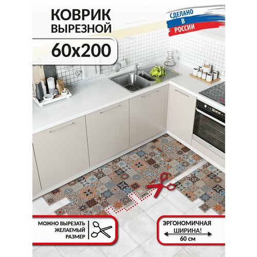 Коврик для кухни. Ковер вырезной безворсовый Icarpet PRINT 60х200 Плитка Марокко