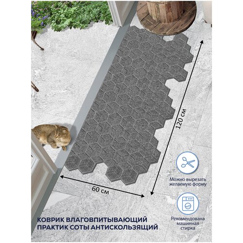 Коврик вырезной придверный SHAHINTEX практик Соты антискользящий влаговпитывающий 60х120