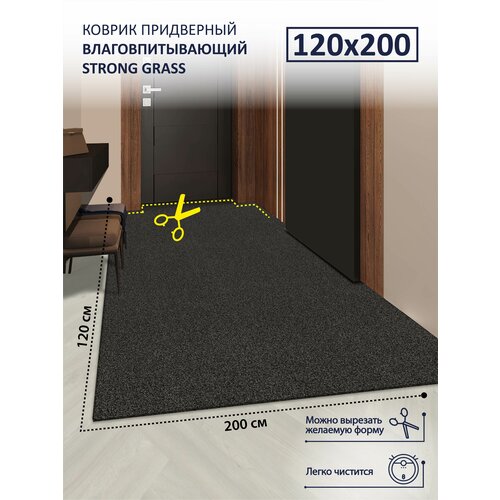 Коврик придверный грязезащитный SHAHINTEX STRONG GRASS ТПР 120х200 антрацитовый